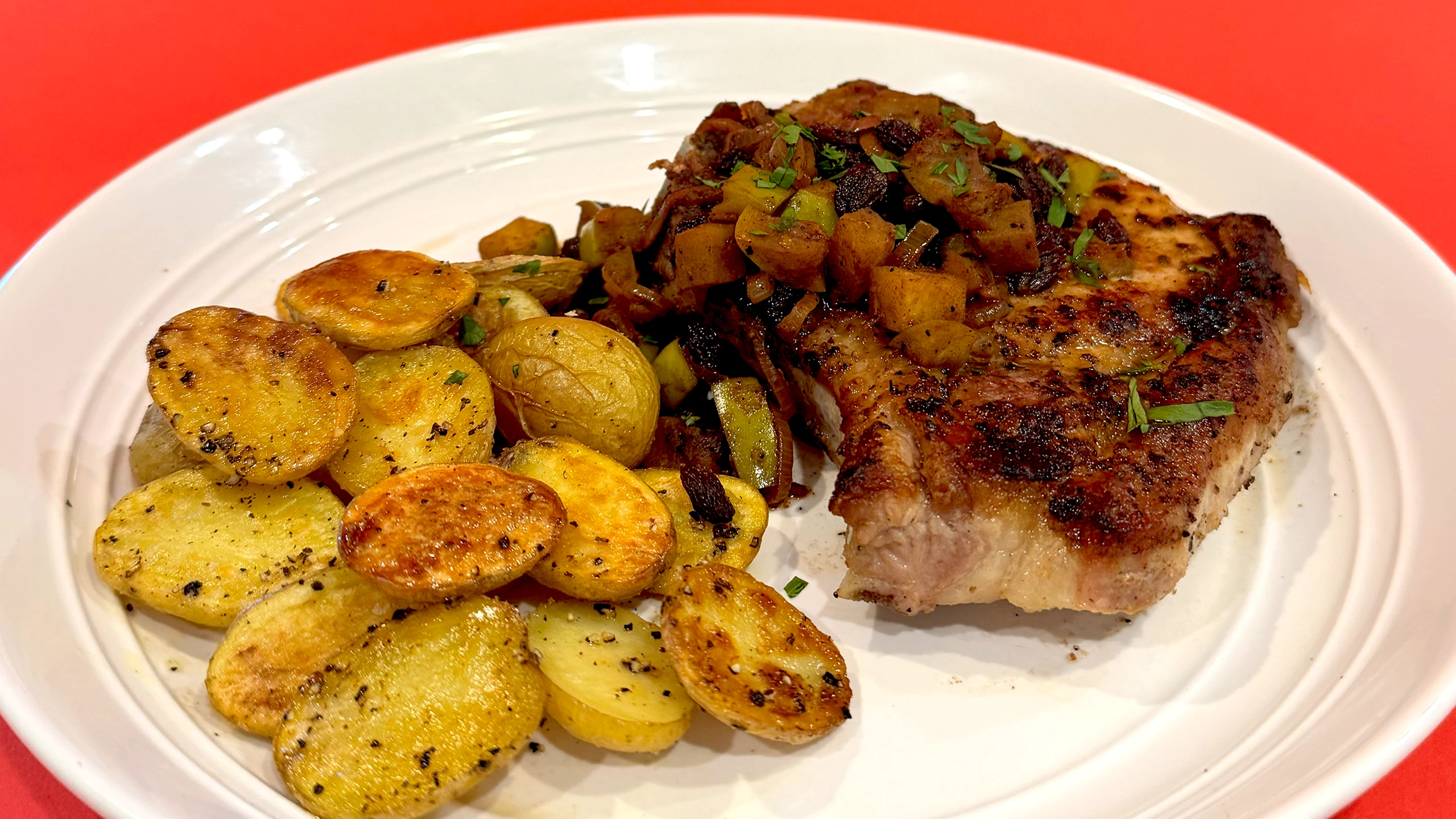 Seared Pork Chops with Apple Raisin Compote